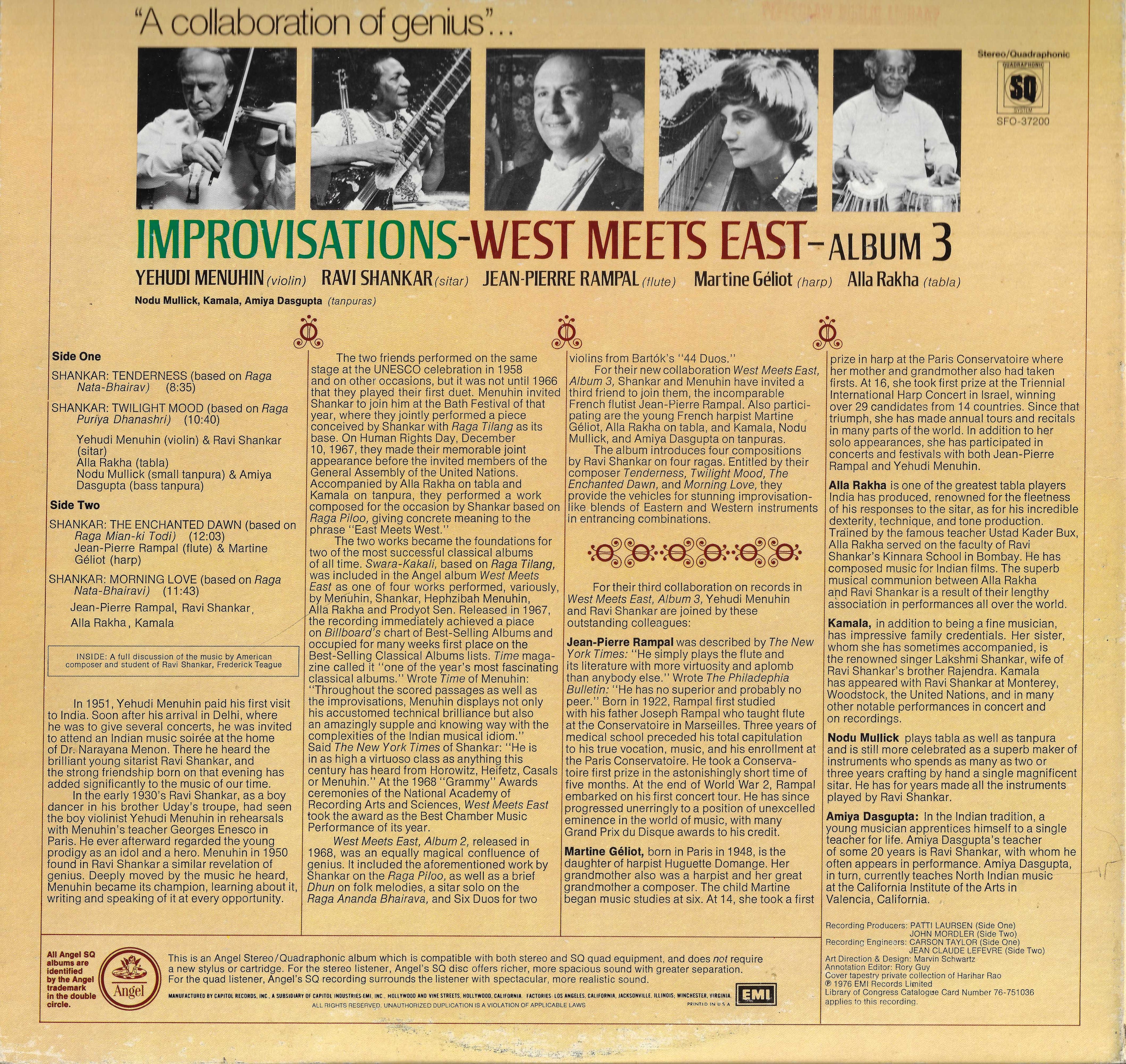 Yehudi Menuhin, Ravi Shankar & Jean-Pierre RampalImprovisations - West Meets East, Album 3