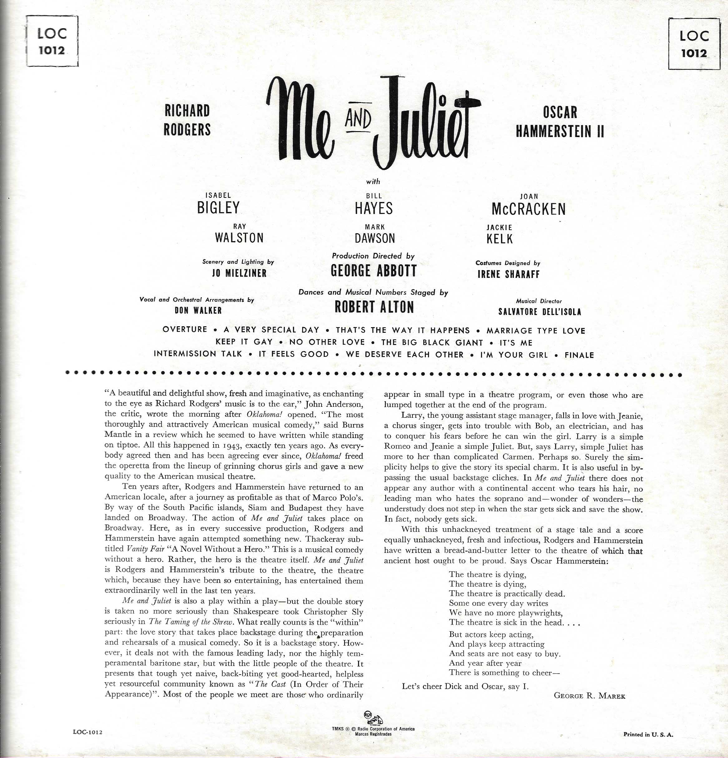 Rodgers & HammersteinMe & Juliet (Original Cast Recording)
