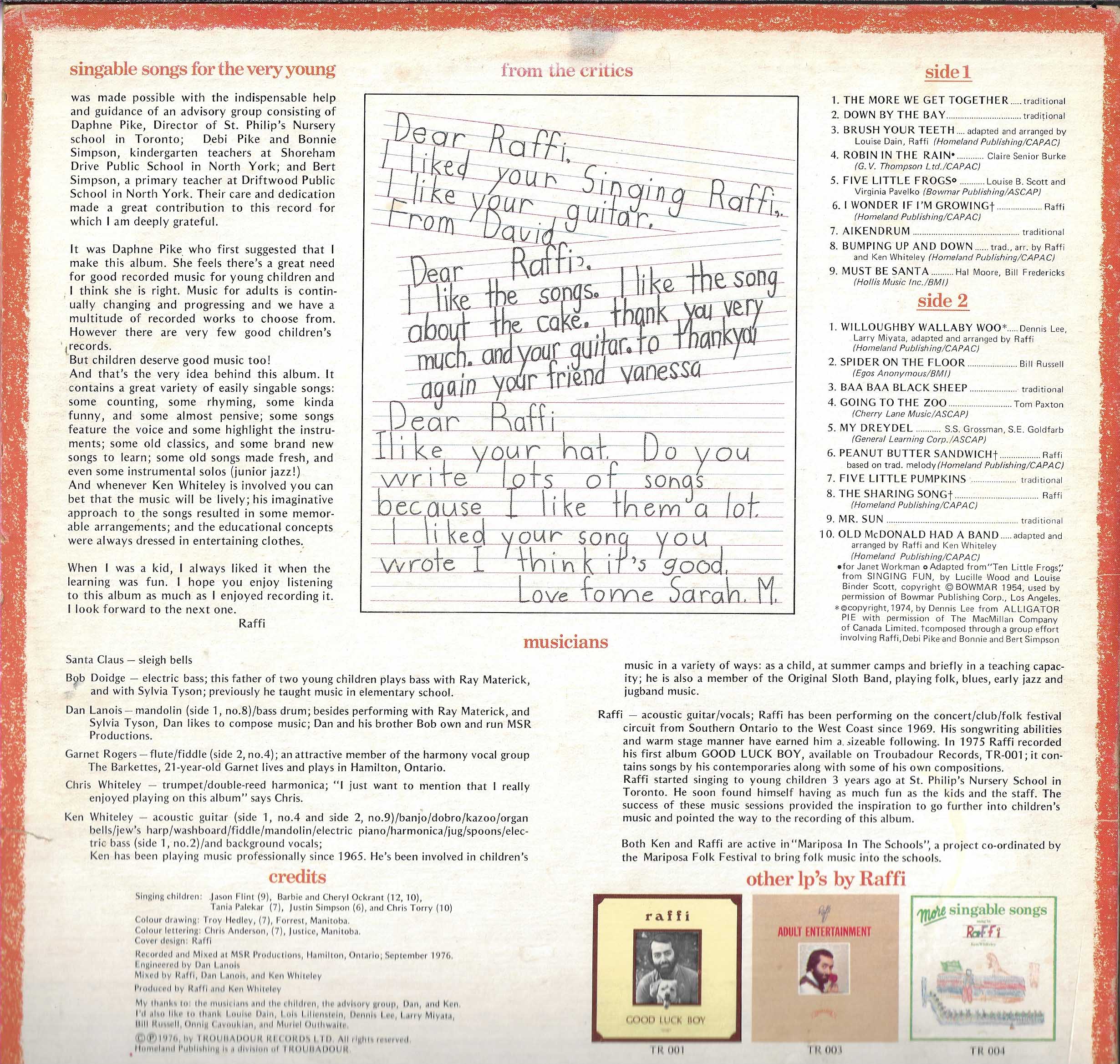 RaffiSingable Songs For The Very Young