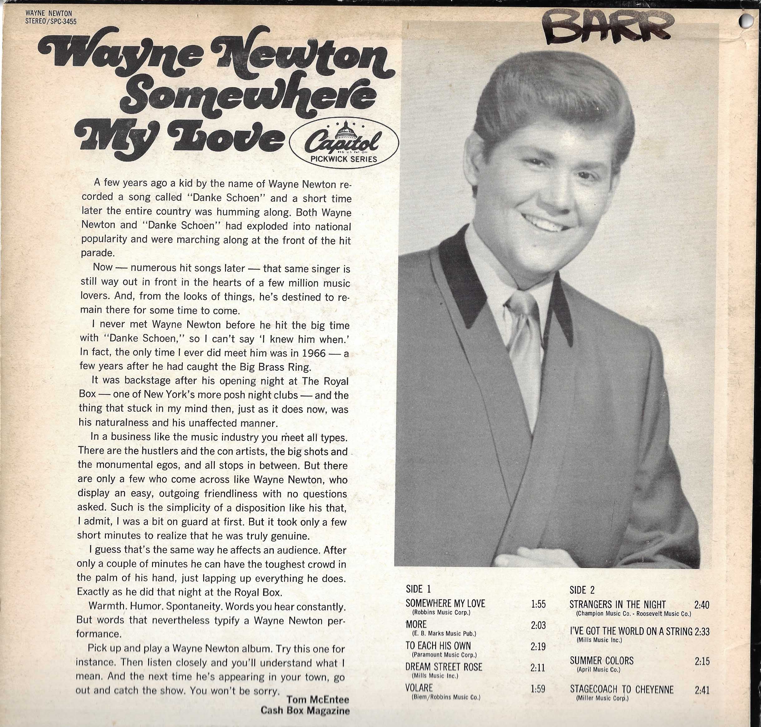 Wayne NewtonSomewhere My Love